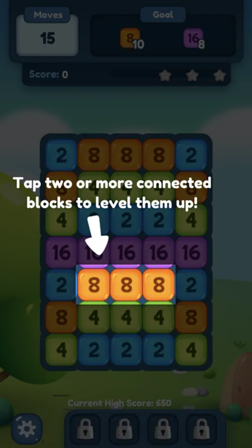 Combine blocks by tapping two or more connected blocks and watch your blocks level up, up, up to the 2048 tile and beyond!