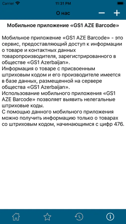 GS1 Azərbaycan, Azərbaycanda istehsal edilən və GS1 Azərbaycan bazasında yerləşdirilən məhsulların barkod vasitəsilə axtarışı və avtomatik identifikasiya edilməsinə imkanı verən mobil tətbiqdir.