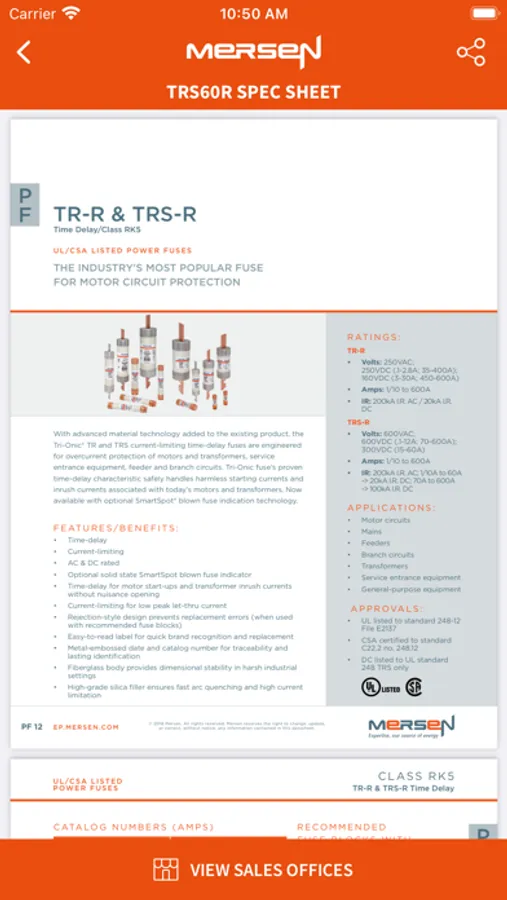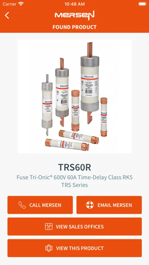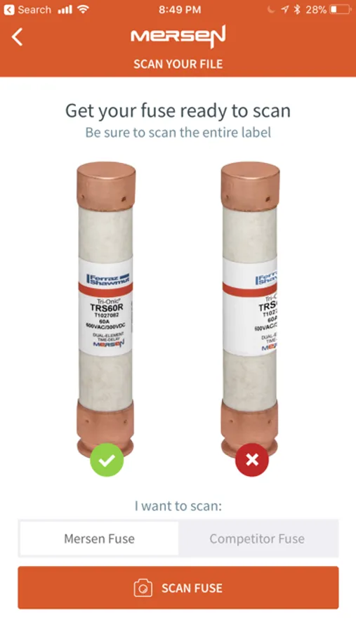 This industry-first application gives the option to search the Mersen database via text or photo recognition. Simply use a mobile device to scan the fuse, fuse holder, switch or surge device and the application will recognize the competitive product and return a Mersen cross referenced part number. The App will then direct you to the nearest sales office for product help.