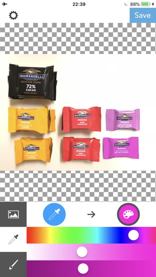 After tapping the dropper icon, you can choose a color by your finger on an image.