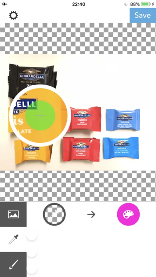 After you chose the image, select the color you want to swap with Dropper tool or swipe the area with Brush tool.
