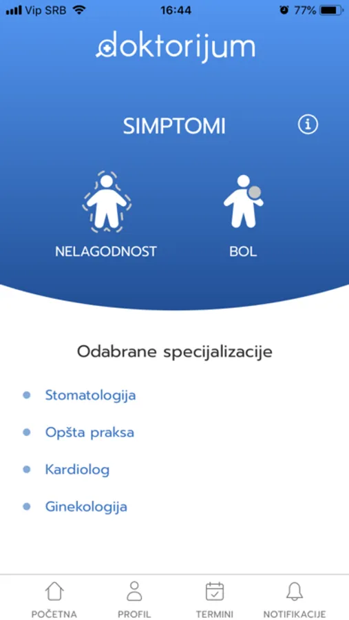 Doktorijum je Vaša aplikacija za zakazivanje termina kod doktora. Unesite Vaše simptome, odaberite neku od ponuđenih ustanova i termin koji Vam odgovara i zakažite.