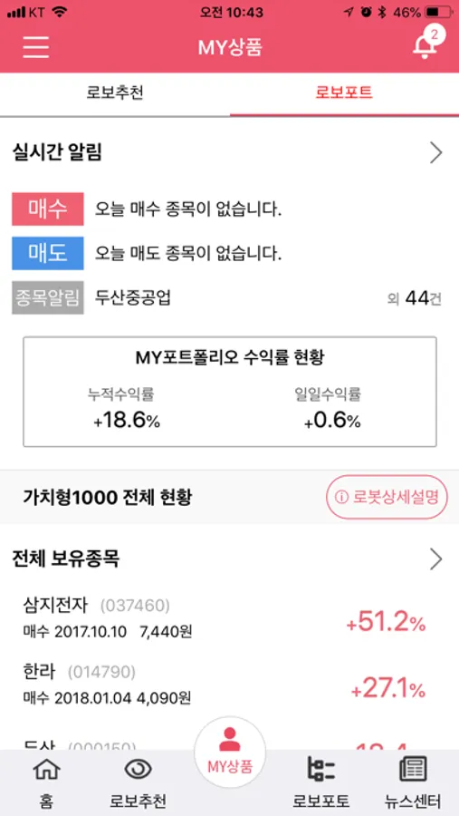 로봇이 찾아주는 추천종목과 로봇이 만들어주는 포트폴리오!