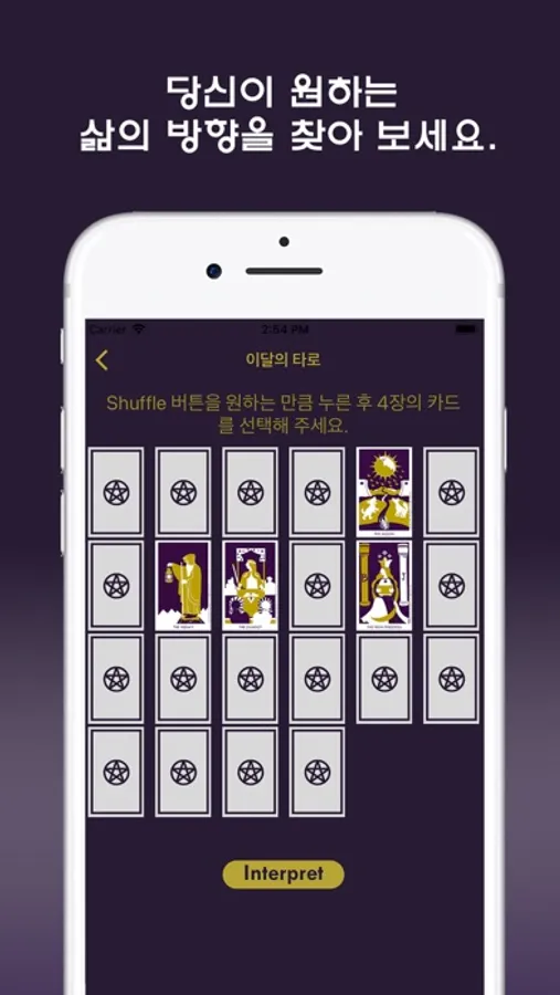 생각을 집중하고, 당신이 원하는 것을 떠올리면서 카드를 선택해 보세요.