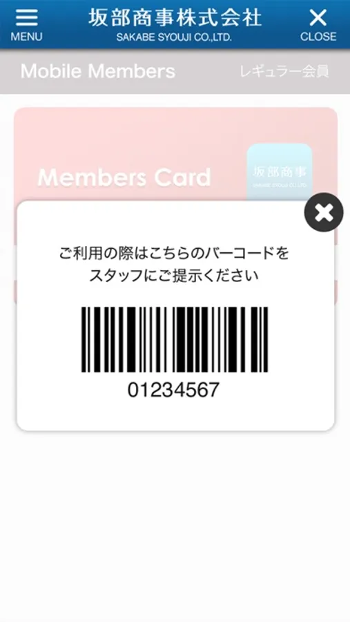 「会員番号バーコード」の表示機能は、お店でのお支払い時に提示することで、スムーズな会計が可能です。