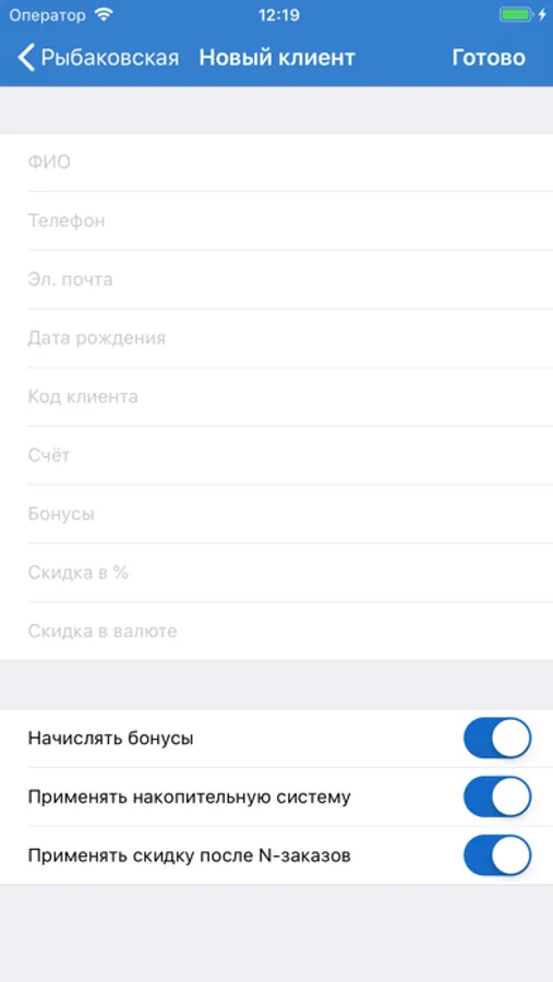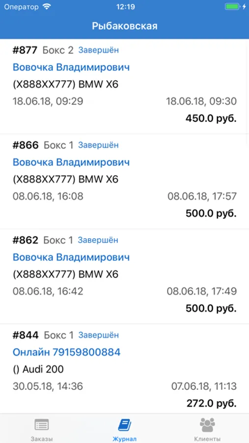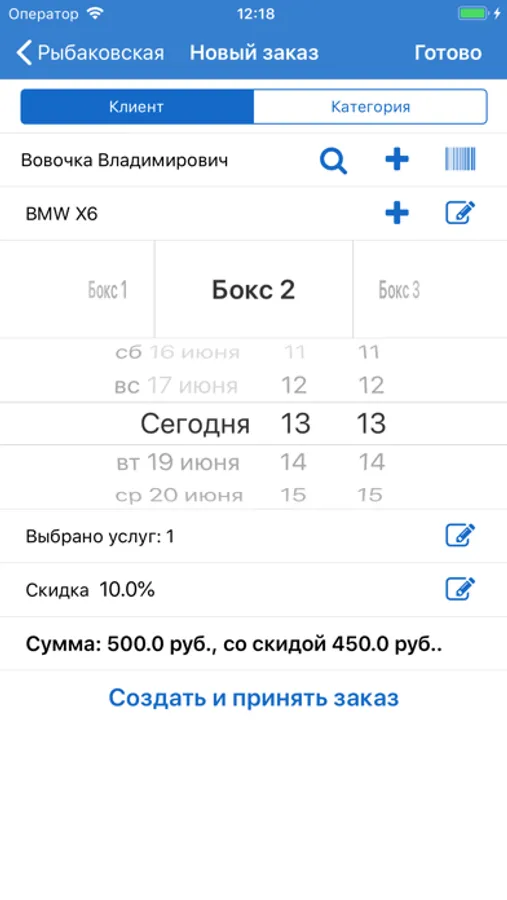 5) Создание и поиск (по имени, номеру телефона, номеру автомобиля, коду карты) клиента.