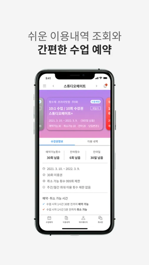 스튜디오메이트(StudioMate)는 필라테스, 요가, PT 등 강습형 스튜디오에 필요한 서비스를 제공합니다.