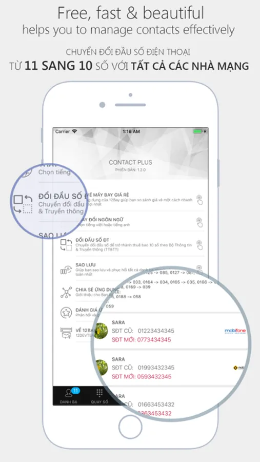 Contacts-Plus giúp bạn quản lý danh bạ, chuyển đổi đầu số điện thoại theo bộ TT&TT, sắp xếp các số liên lạc trong sổ địa chỉ của bạn theo nhóm sao lưu và khôi phục danh bạ, và còn nhiều tính năng hấp dẫn nữa ^^