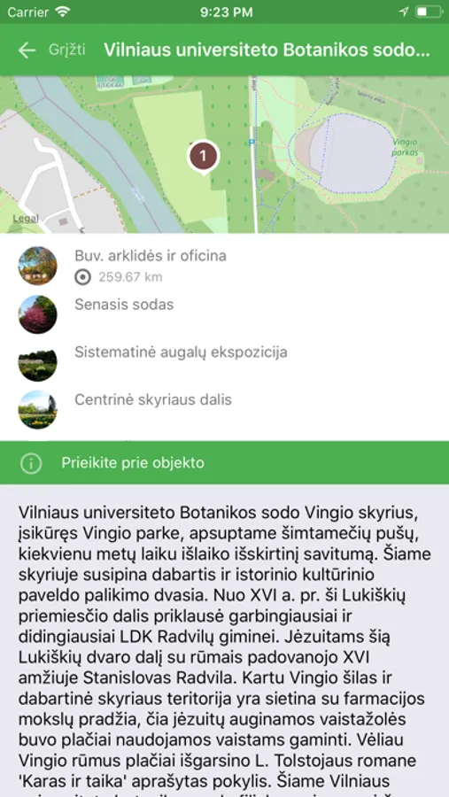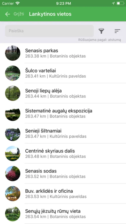 • Objektų nuotraukos ir aprašymai.