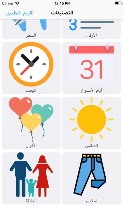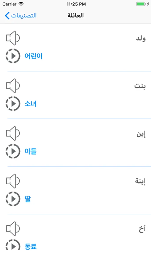 ـ كل قسم به عدة كلمات وجمل وبالصوت وترجمة للعربية