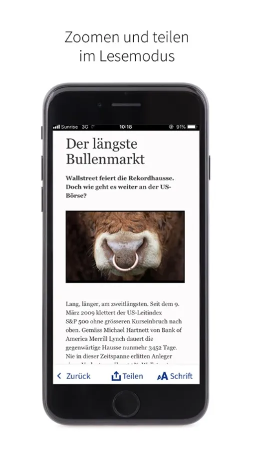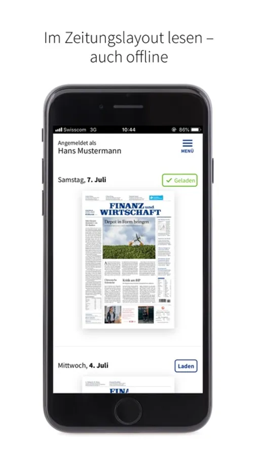 • Lesen im klassischen Zeitungslayout oder im Lesemodus mit anpassbaren Schriftgrössen