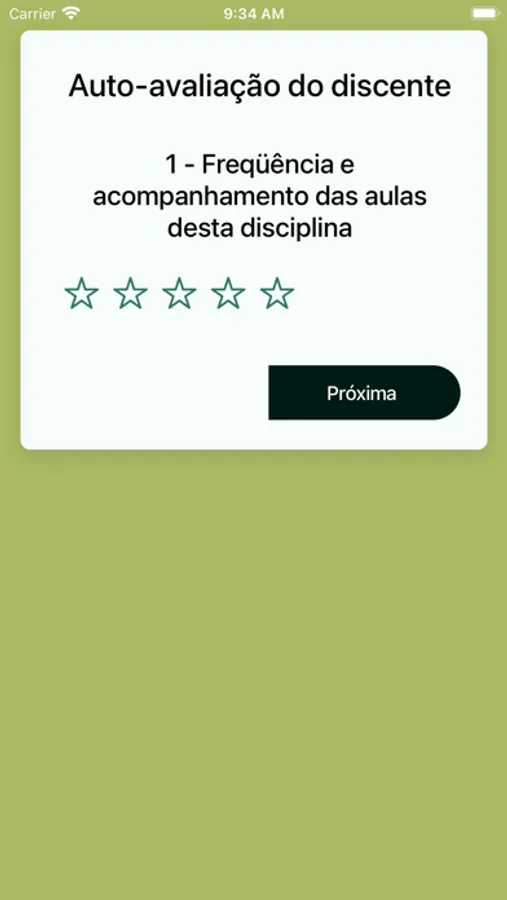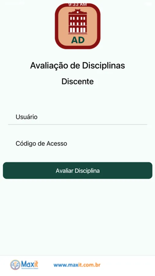 O Aluno deverá acessar com o código fornecido pelo professor em sala de aula para fazer a avaliação da disciplina