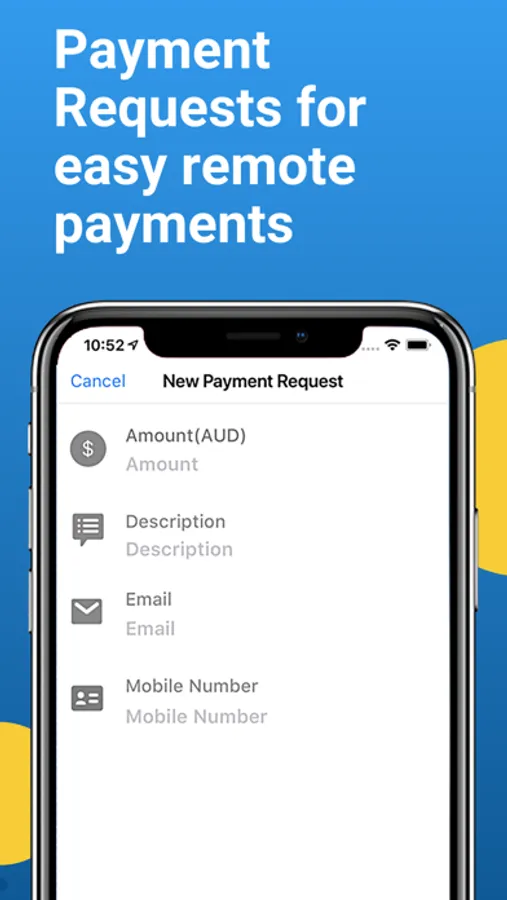 - EXCLUSIVE - Send Payment Requests: Enter amount, description and send a payment request via sms, email, WhatsApp etc for your customers to click, enter their payment details and pay securely. Easy!