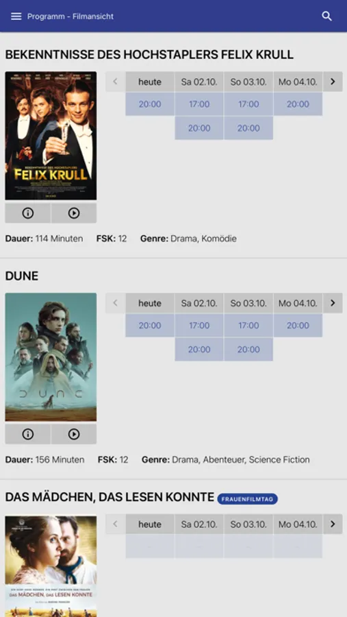 Hier kaufst Du in nur einer Minute Kinotickets für Deinen Lieblingsfilm. Schnell, sicher, einfach und ohne Anstehen an der Kinokasse. Einfach aus dem aktuellen Kinoprogramm Deinen Film buchen und Du erhältst die Tickets einfach & bequem als E-Ticket auf Dein Smartphone und an Deine E-Mail-Adresse.