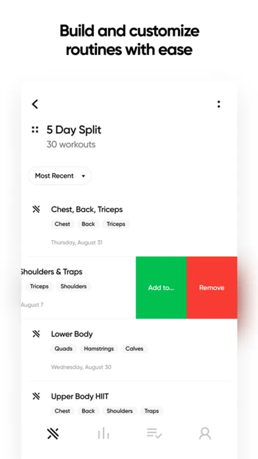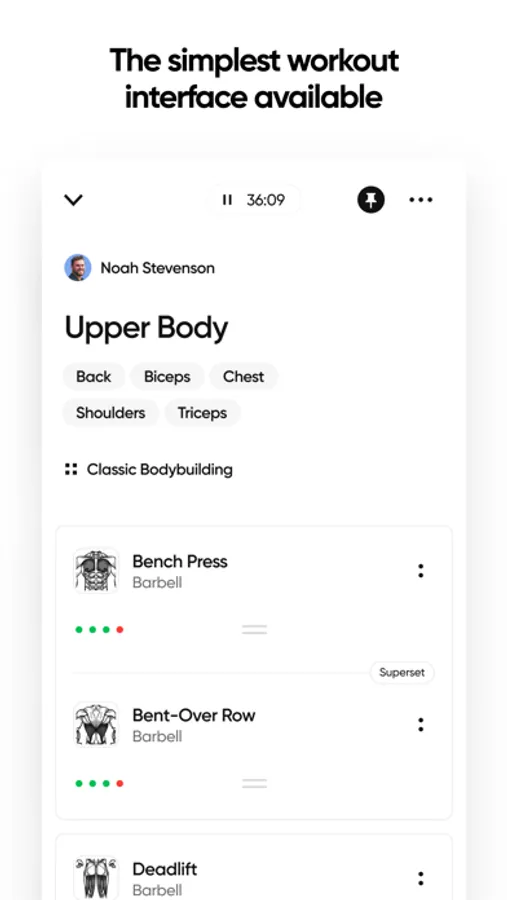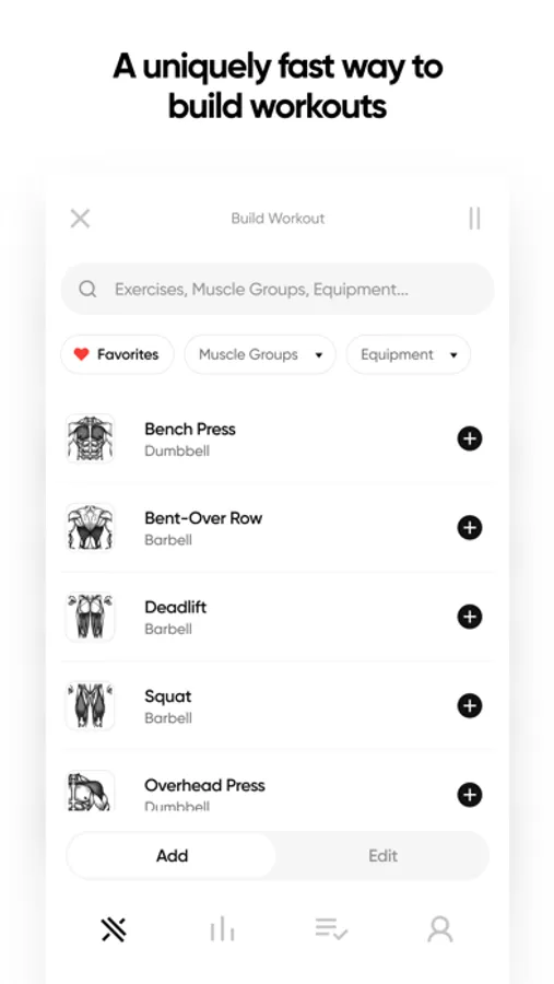• Gym goers can build workouts ahead of time with our “Build Workout” feature. When you’re done building a workout it will save to your Library. Build workouts for any fitness and weightlifting goal, like muscle growth, muscle tone, strength, bodybuilding, powerlifting, weight loss, and more.