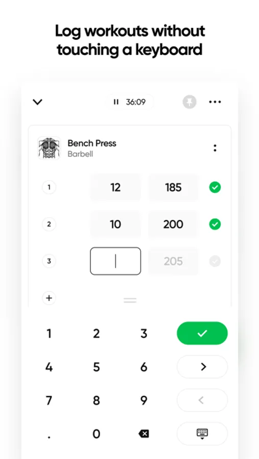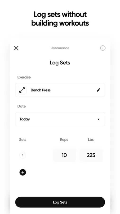 • Log weightlifting sets separately from workouts with Log Sets, in case you don't want to perform a whole workout and want to log one weightlifting exercise individually.