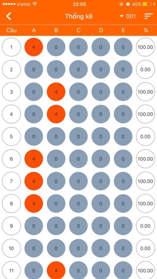 - Review: You can review to your key or answer, click on the item and review your answer, you can delete and share it with facebook, zalo, gmail by hold in the item. Besides, you can select the menu and have some options, you can sort the list and share it to facebook...It is helpful, your list is too long, you should delete all of them and start a new multiple choice test.