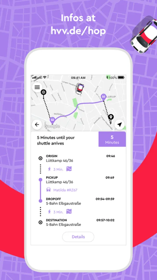 Moin Moin! With our on-demand shuttle service, mobility has become even smarter: You can book your journey conveniently and individually via an app, without a timetable - create your individual travel chain with hvv hop and reach your destination comfortably, quickly and safely.