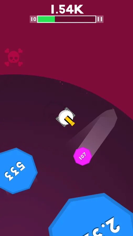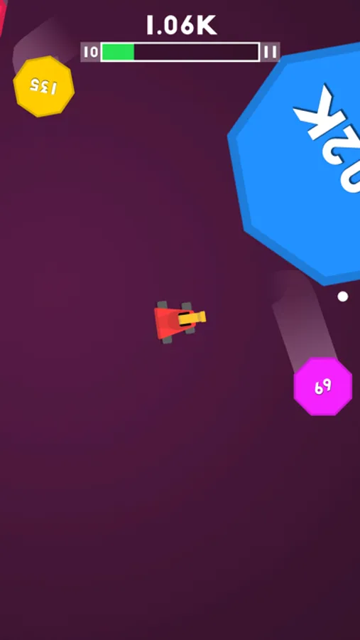 Destroy all the shapes to clear the level. Touch and swipe to change direction.