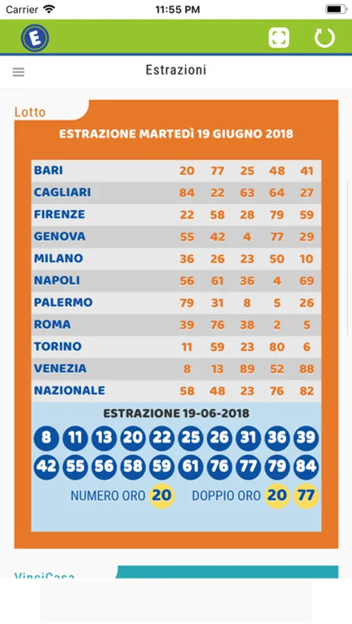 Ultima estrazione del gioco del Lotto inclusa la ruota nazionale ed il 10 e lotto serale ovvero quello abbinato all'estrazione del lotto.