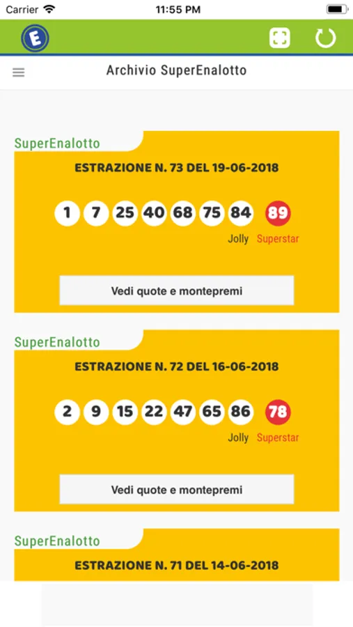 Nella sezione archivio è possibile verificate tutte le estrazioni degli ultimi sessanta giorni