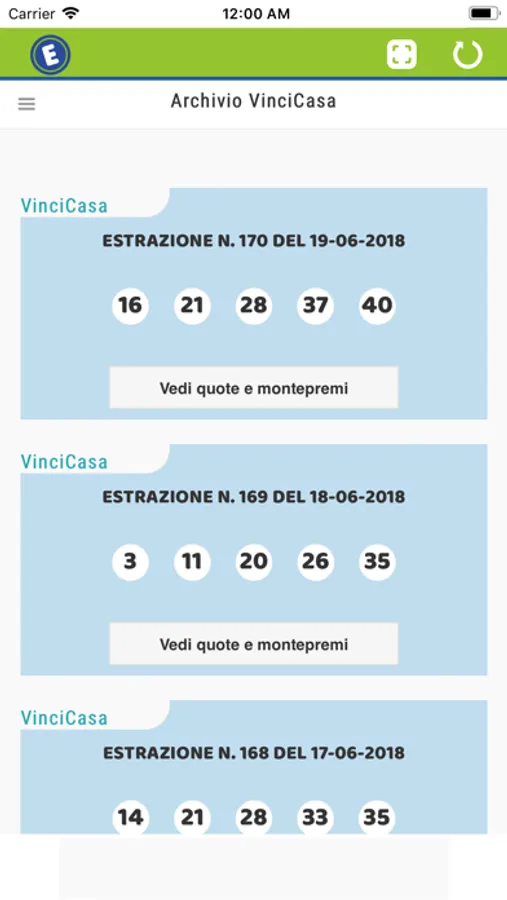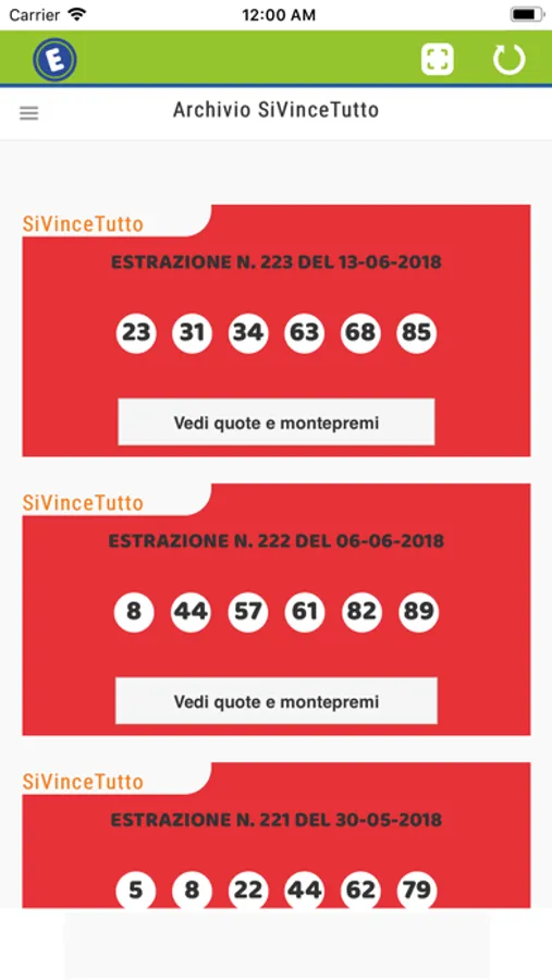 Ma non finisce qui ! L'app visualizza per le estrazioni già avvenute sia i numeri vincenti che quelli giocati evidenziando quelli indovinati !
