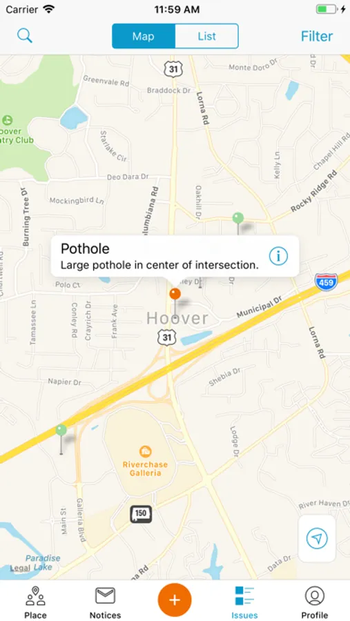 The My Hoover Connect app will make asking questions and reporting local problems in our city a more efficient process. The mobile app’s purpose is to help residents easily report street maintenance issues, garbage or recycling issues, street light requests, potholes, damaged street signs, as well as damaged trees and roads. The app uses GPS to recognize a user’s current location and provides a menu of common quality-of-life conditions to select from. Users will have the opportunity to upload pictures or videos to accompany requests and can use the app to track the status of reports. Residents can also contact My Hoover Connect at (205) 739-7311 for information regarding any municipal service or connect on line at the My Hoover Connect link or the HVR Connect link at www.hooveralabama.gov or visit Hoover City Hall at 100 Municipal Lane, Hoover, AL 35216.