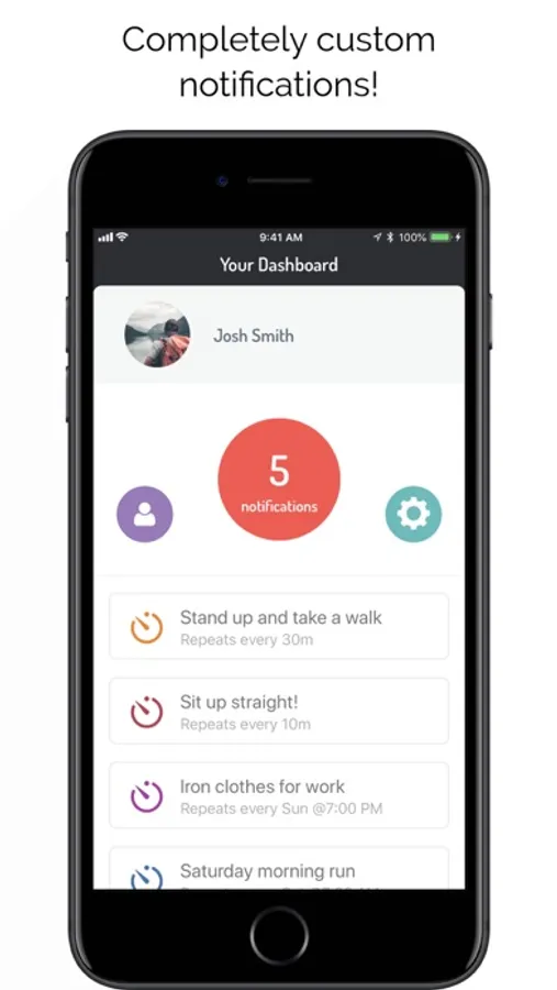 * A beautiful dashboard displaying all of your upcoming notifications.
