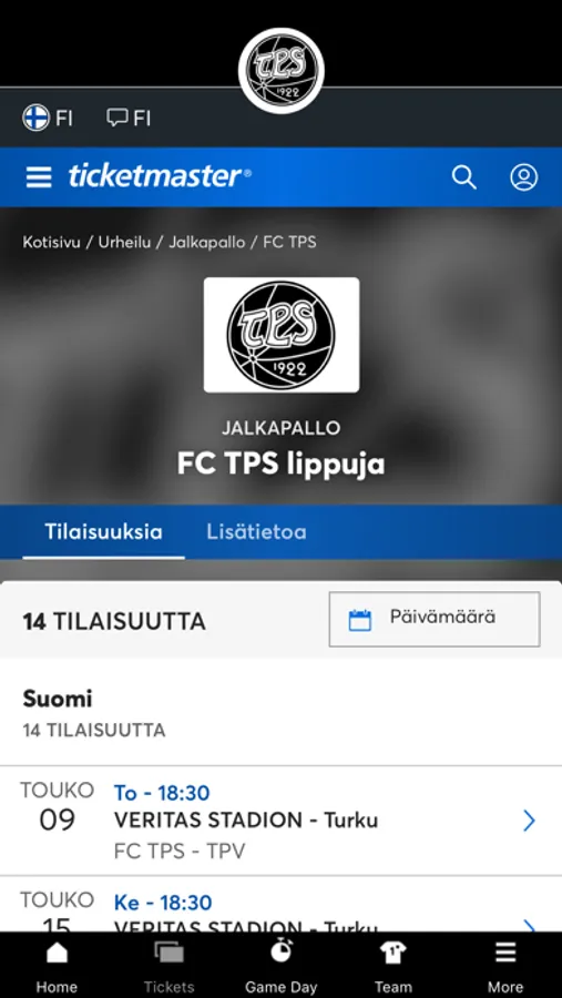 TPS Football's new mobile app is now ready. With the new FC TPS application, you can get tickets to TPS home games and make in-app food and drink purchases without having to queue! The mobile app also gives you the latest info on the team, including the squad, pre-game and other news. You can participate in MVP-votes.