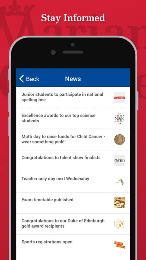 The official App for Marian College, featuring news, absentee reporting, newsletters and much more. Our App keeps you up to date with information that is important to you, and you will receive push notifications regularly.