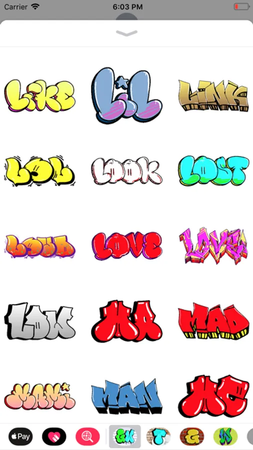 Over 260 Graffiti Word stickers that you can mix, match and reshape to get a bold message across on iMessanger. Works great over text, pictures, GIF's, and Memoji.