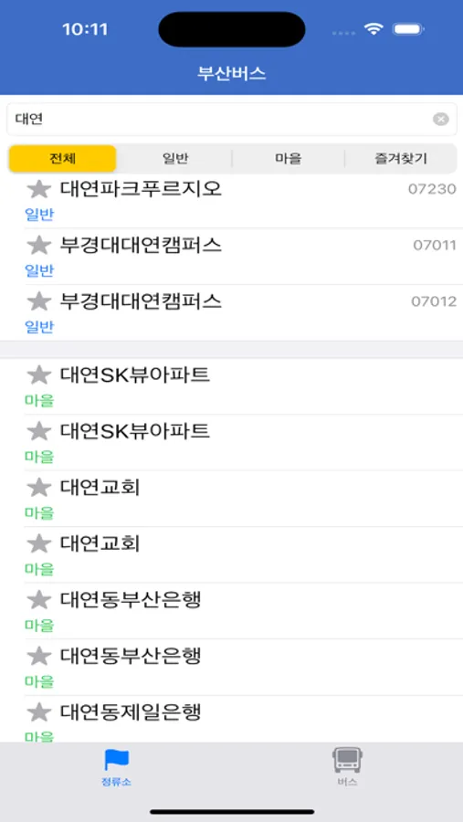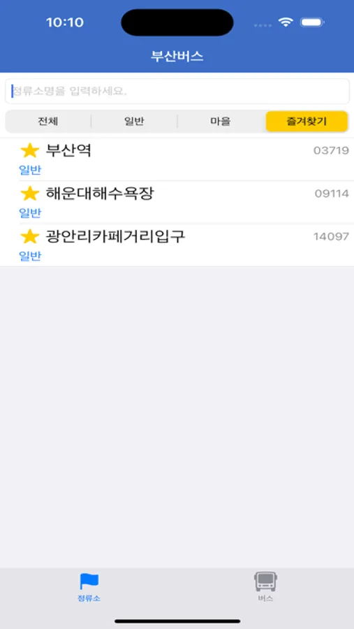 - 일반과 마을 정류소를 검색 할 수 있습니다.