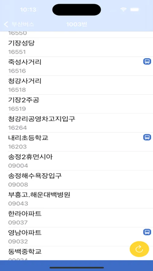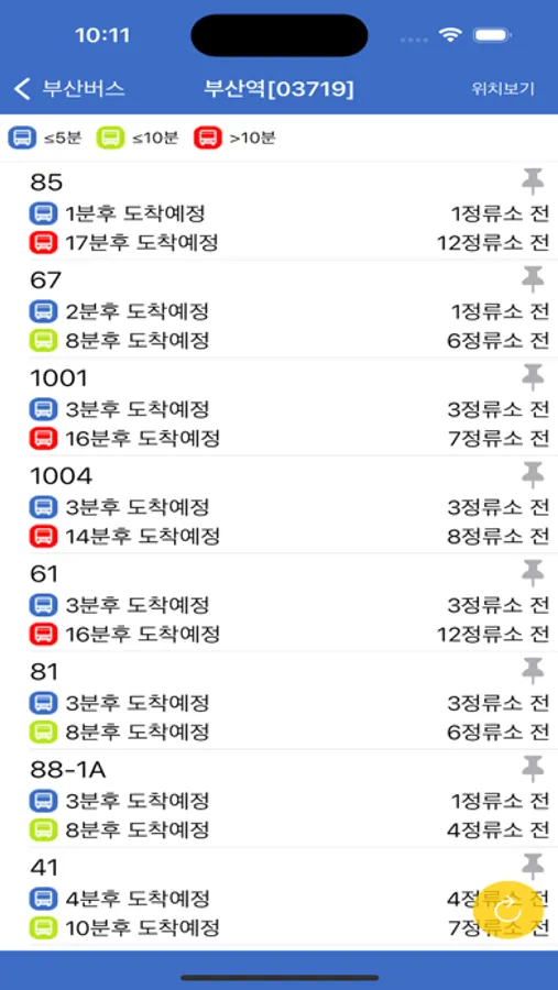 - 선호버스(핀마크)를 선택하면 선호버스는 항상 상위에 표시됩니다.