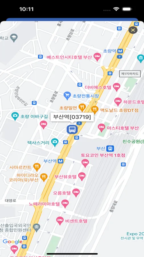 부산시 일반버스/마을버스 노선 및 정류소, 버스 도착 정보를 제공합니다.