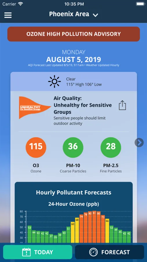 Get hourly air quality forecasts, alerts and notifications, along with real-time and historical data. Plus, learn how to protect you and your family from the impacts of pollutants. This application is available in English and Spanish. The application will detect the default language in your device and will install the corresponding version.