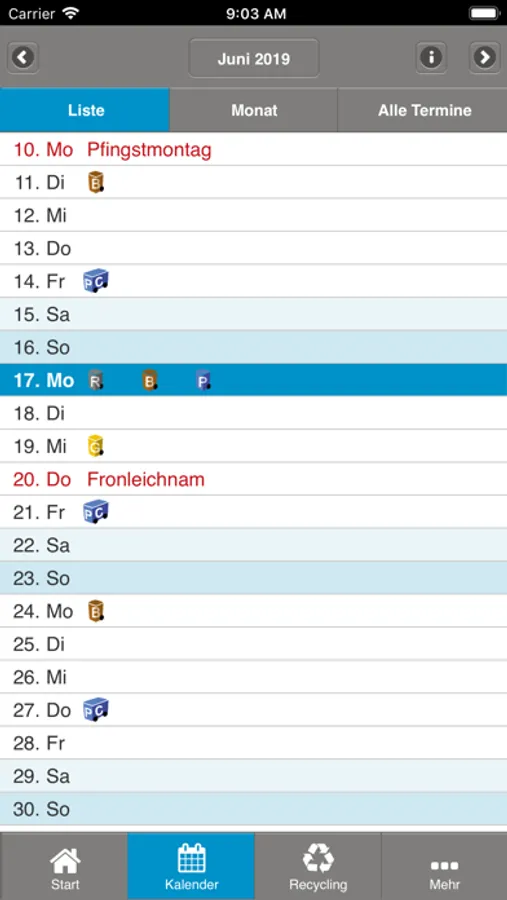 * Vergessen, die Tonne herauszustellen? Mit der Erinnerungsfunktion die Termine für die Leerung in den eigenen Kalender übertragen.