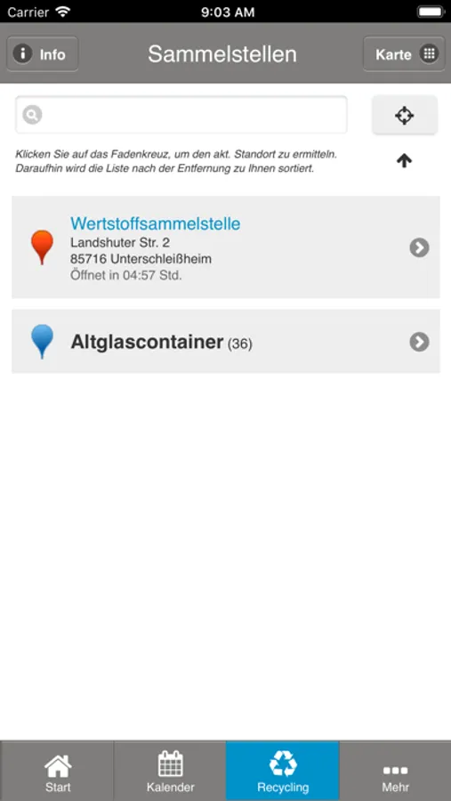 * Standortabfrage zum noch leichteren Finden der nächsten Sammelstelle.