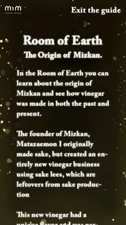 ・This app automatically shows written explanations as you move around the Mizkan Museum (Room of Earth Zone). You can also listen to the explanations using the audio guide function. (Available in Japanese and English)