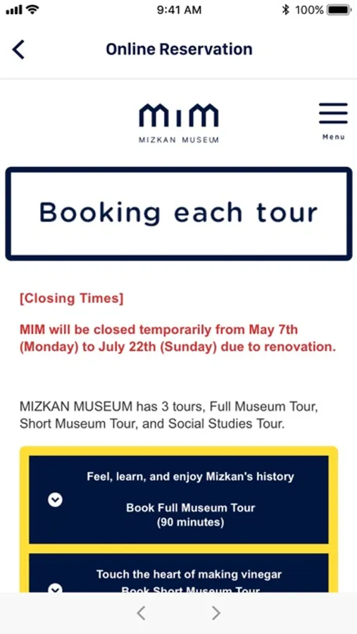Enhance your visit to the Mizkan Museum and Handa City with the MIM App. Apart from guiding you around the museum (Short Museum Tour), this app also provides audio and written explanations about exhibition spaces and the exhibits. You can also use the app to get information about events at the museum as well as major events held in Handa City.