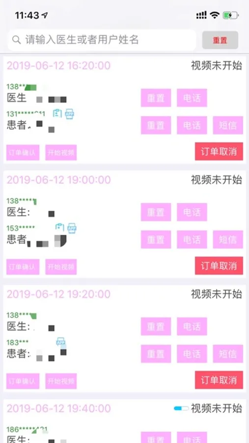 具有电话短信联系用户,视频服务,修改订单时间,确认订单的功能.