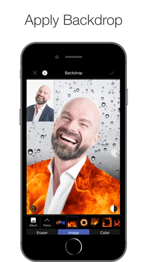• Remove background or Erase background or Delete background to create new content using the change background feature. You can also make photo cutout.