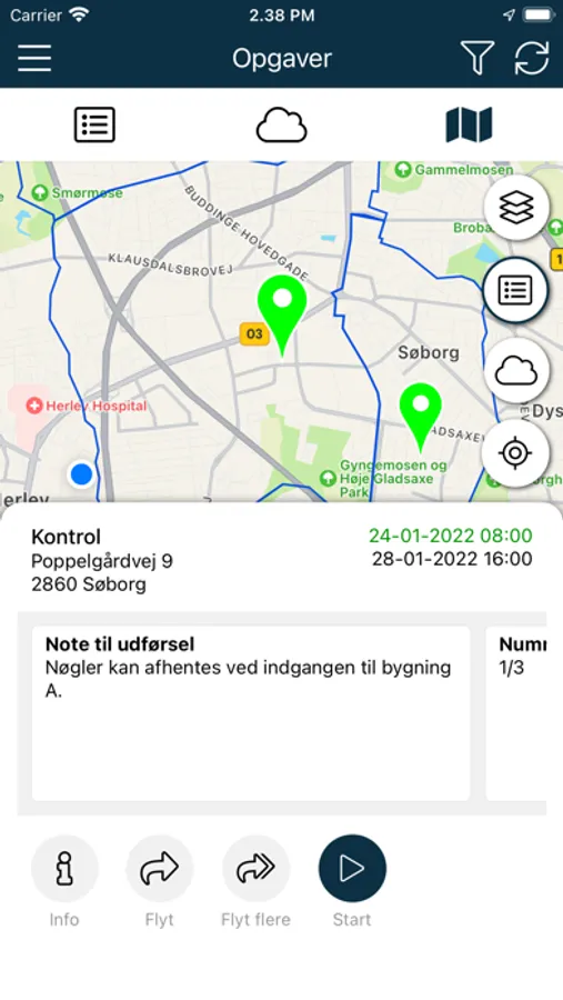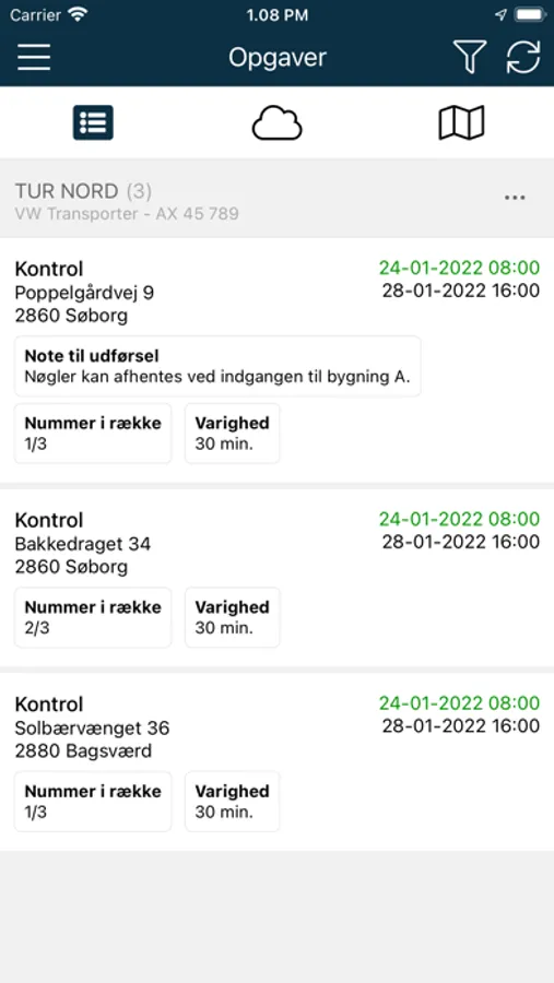Opgaver fordeles i Synchronicer Opgavestyring fra kontoret til staben af medarbejdere i marken. I marken modtages opgaverne på smartphones eller tablets.