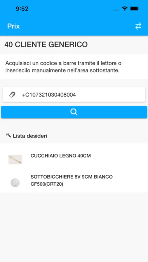 Puoi rendere Prix disponibile attraverso uno o più dispositivi, direttamente nel tuo negozio, da consegnare ai tuoi clienti all’ingresso; potranno così preparare la propria lista dei desideri con i prodotti di loro interesse, arrivando al checkout in un lampo.