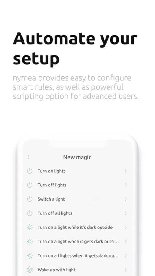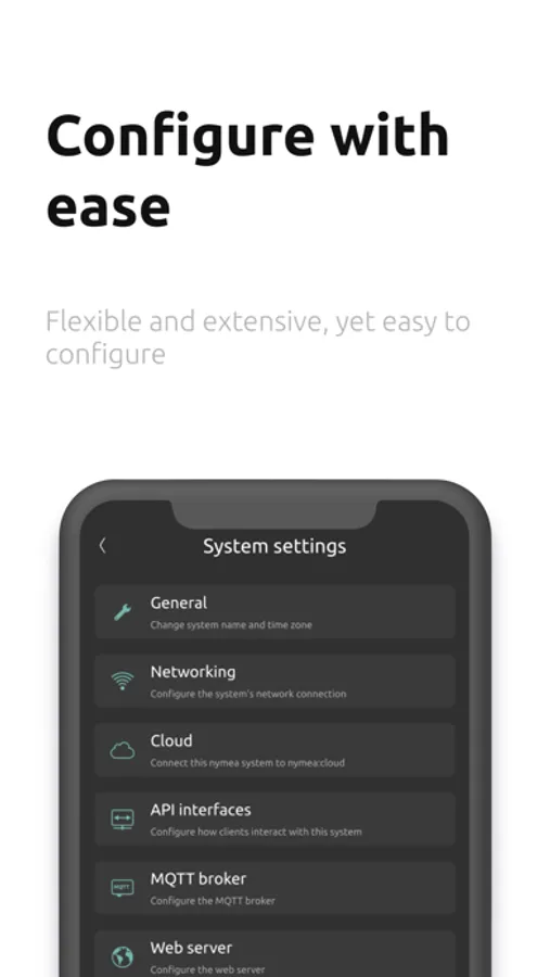 nymea:app is a frontend application for nymea:core. It allows to configure and control all functionality of nymea:core.
