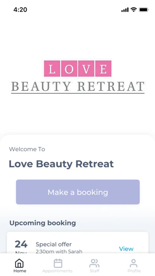 The Love Beauty Retreat app makes booking your appointments and managing your loyalty points even easier. You're just a few taps away from feeling good and looking great!
