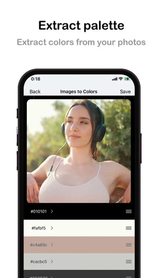 - Color Extraction from photos: Tools helps extract color palette from your photos.