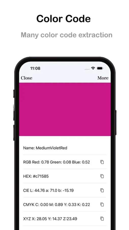 - Color Code: RGB, HEX, CIE, CMYK XYZ