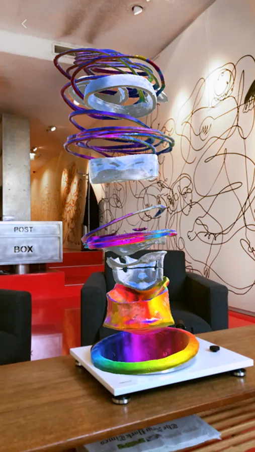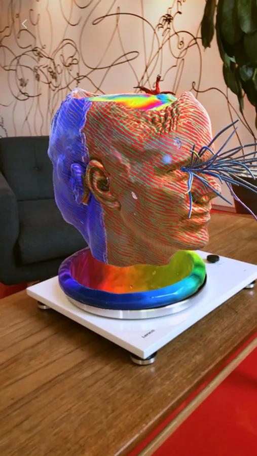 Listeners who don’t have the record, however, can still experience the Necessary Explosion app. Simply load the app on mobile or tablet, you can play the album through Apple Music, Spotify, Soundcloud or for free on YouTube through a secondary device or sound system (not the device the app is operating on), pump the volume and follow the prompts. Users are then directed to find a flat surface to place the experience, where the AR sculptures will appear and spin as they would on a physical turntable.