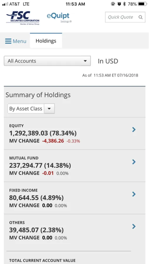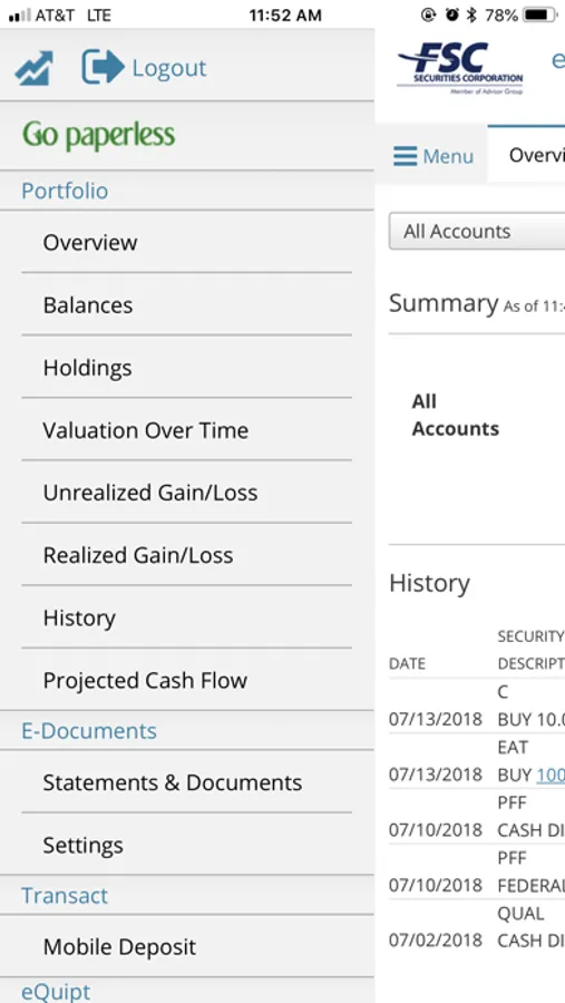Through FSC eQuipt, you have fully featured access to account information, such as portfolio allocation, cash balances, holdings, historical activity, portfolio valuation over time, as well as electronic documents and statements. You can also initiate check deposits into your FSC account using the Remote Deposit Capture feature.