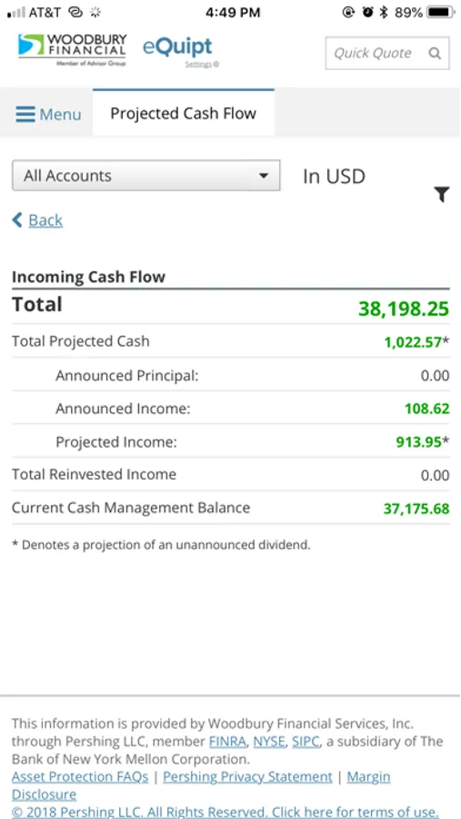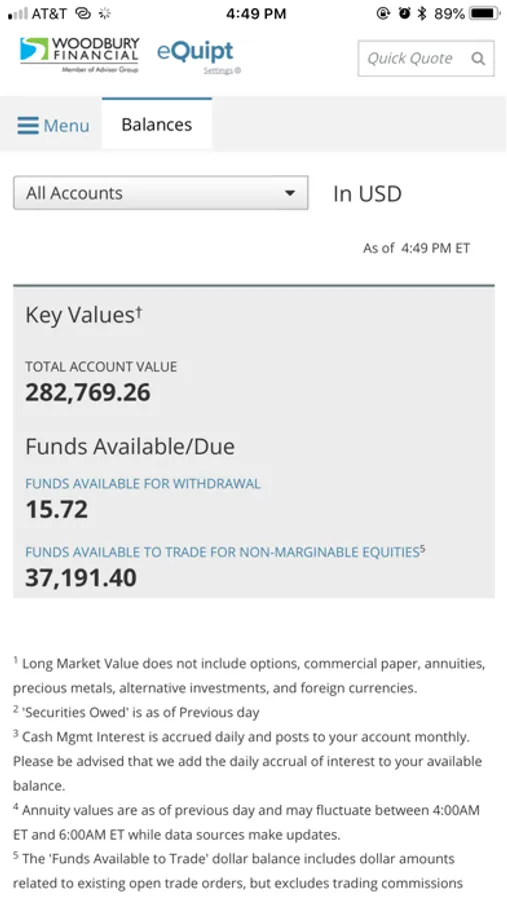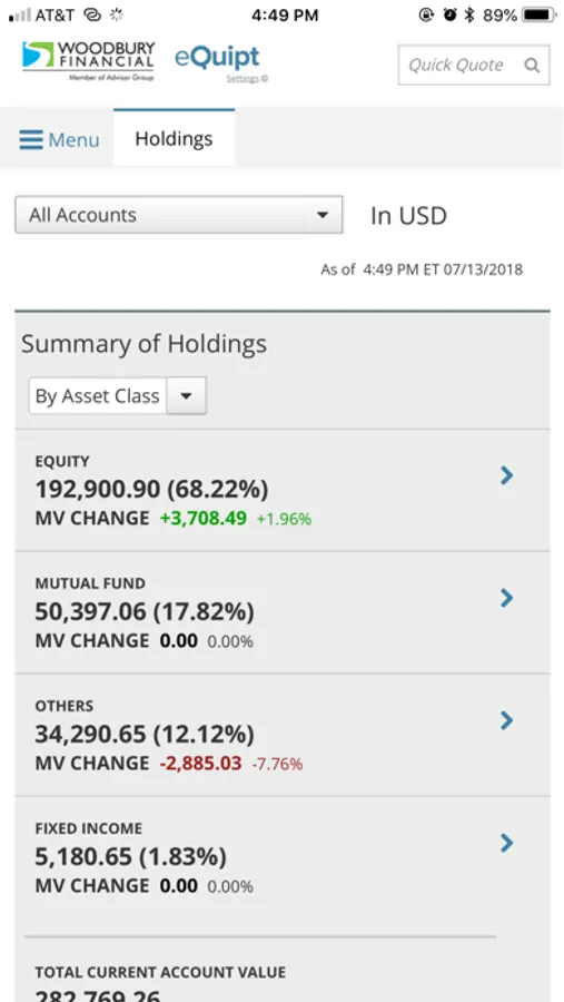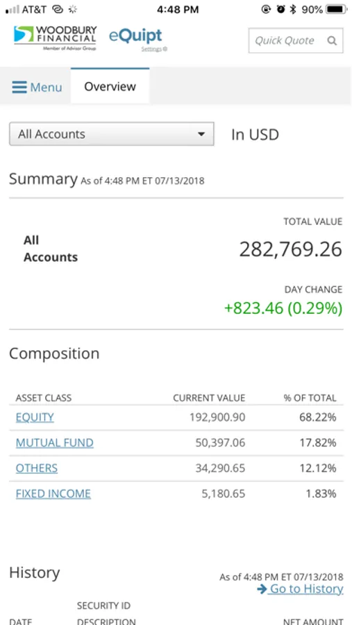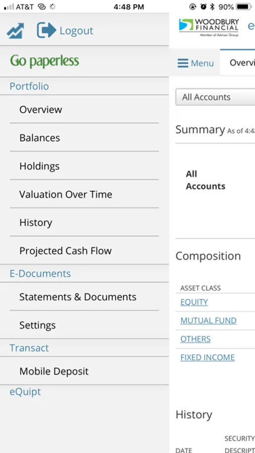 Through WFS eQuipt, you have fully featured access to account information, such as portfolio allocation, cash balances, holdings, historical activity, portfolio valuation over time, as well as electronic documents and statements. You can also initiate check deposits into your WFS account using the Remote Deposit Capture feature.
